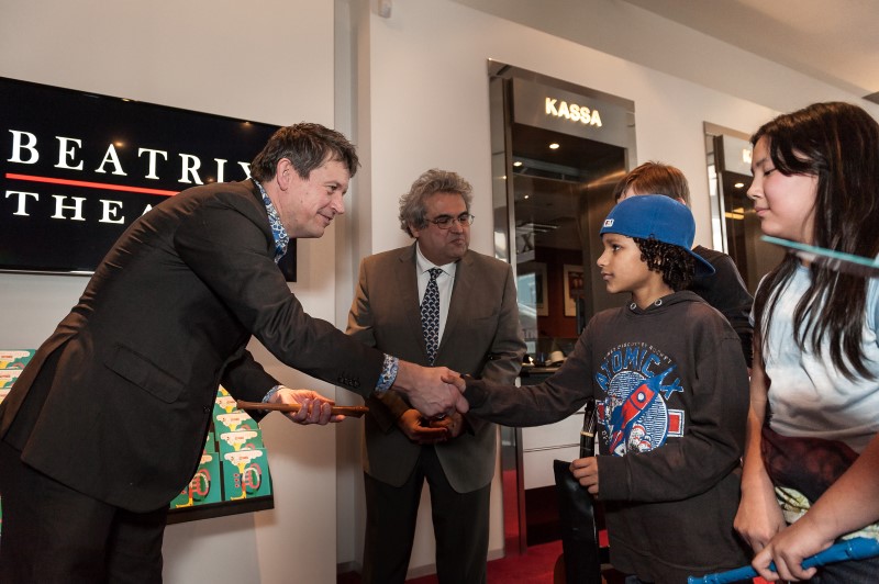 Gisteren werd in het Beatrix Theater Utrecht het startschot gegeven voor de Nationale Inzamelactie van Muziekinstrumenten van de Kinderen voor Kinderen-Musical ‘Waanzinnig Gedroomd‘. Tweelingzusjes Mylene en Rosanne, actrices in de musical, doopten het Beatrix Theater eerst om tot officieel inzamelpunt. Daarna ontvingen Marco de Souza van het Instrumentendepot Leerorkest en Jan Jaap Knol van het project Kinderen Maken Muziek, het eerste instrument van Moeder ik wil bij de Revue-hoofdrolspeler, Terence van der Loo. Ook een klas van de Utrechtse Basisschool de Spits leverden alvast instrumenten in die zij de afgelopen week verzamelden.