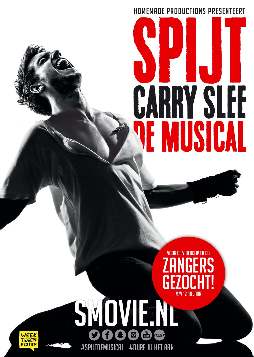 In het kader van de nationale WEEK TEGEN PESTEN is producent Homemade Productions op zoek naar jongens en meisjes tussen de 12 en 18 jaar om mee te zingen in de videoclip van de musical SPIJT. De musical is gebaseerd op het beroemde boek van Carry Slee en gaat over een jongen die gepest wordt en de gevolgen voor zijn omgeving en de kinderen op zijn school. De musical brengt een nog steeds actueel thema en probleem onder de aandacht. Met de videoclip vormen kinderen samen één stem en maken ze een vuist tegen pesten.