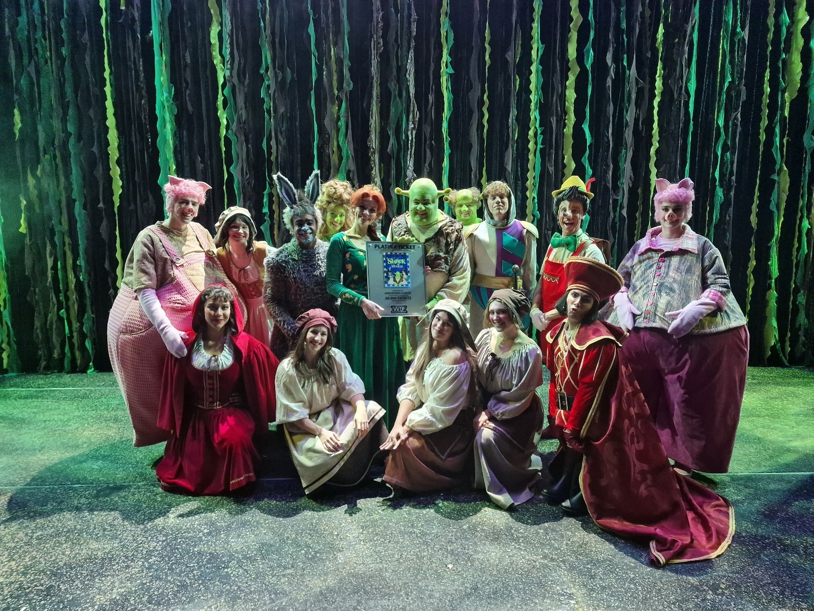 VerSHREKkelijk goed nieuws voor Shrek De Musical! Afgelopen week werd de cast verrast met de VVTP Platina Ticket Award voor de verkoop van meer dan 50.000 tickets. Dit succes is niet alleen een belangrijke mijlpaal voor de cast, maar ook voor producent Van Hoorne Studios, die met deze voorstelling zijn eerste grotere familiemusical op de planken brengt. Nog geen twee weken na de première blijkt Shrek De Musical al een hit bij jong en oud.