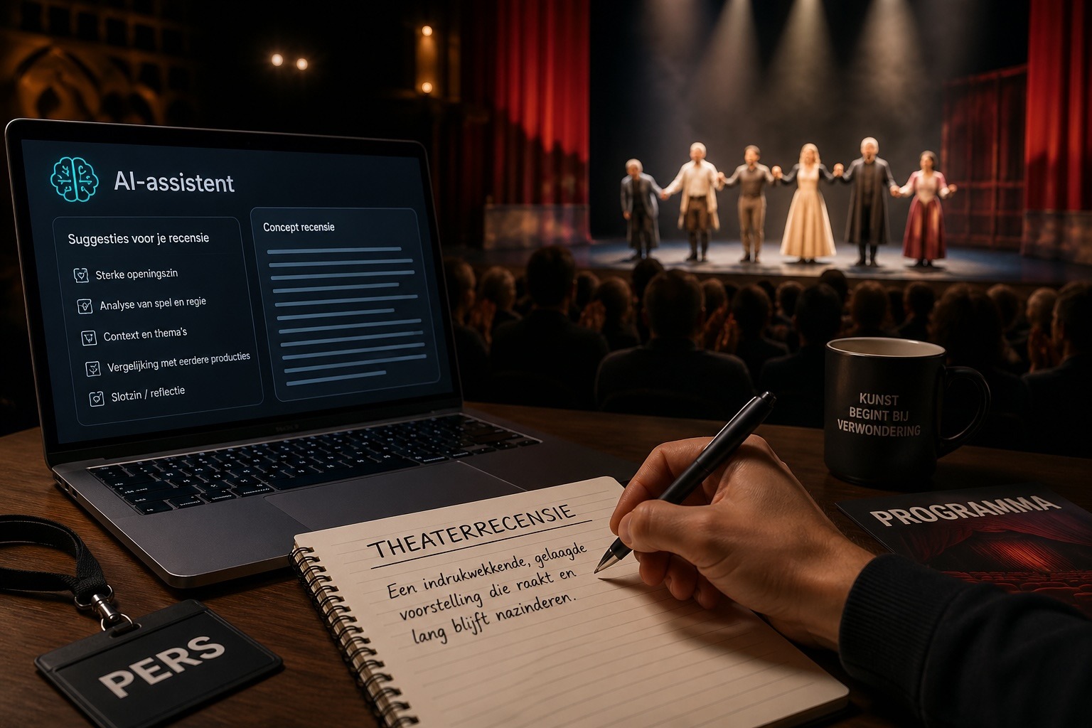 Laten we vooropstellen dat we AI niet willen wegzetten als iets onwenselijks, dat alleen maar een bedreiging voor de mensheid of haar intelligentie is. Er zijn legio toepassingen, waar het daadwerkelijk zorgt voor betere en snellere resultaten. In de kunst, waar het per definitie om emotie gaat, is dat wat gevoeliger. We hebben de technologie om een voorstelling op video vast te leggen, eventueel vanuit meerdere camerastandpunten. Maak een AI Agent die je voedt met een flinke historie van recensies, liefst ook nog samen met video- of audio registraties van de voorstellingen in kwestie. In zeer korte tijd schrijft de AI Agent dan een goed onderbouwde recensie van de geregistreerde voorstelling, in de stijl die benodigd is voor publicatie. Wil je een kritische driesterren recensie voor het NRC? U vraagt, AI draait voor u. Toch een wat meer juichende recensie voor De Telegraaf, op basis van exact dezelfde registratie? Geen probleem, het rolt er binnen enkele seconden uit. Foutloos. Onderbouwd. Kloppend tot in het kleinste detail. Op 1 ding na. Zoals de Hertog van Monroth in Moulin Rouge zegt, “ik wil je hart”. AI recensies hebben geen hart, geen echte emotie, geen echte beleving. Zelfs niet als het gesimuleerd wordt.