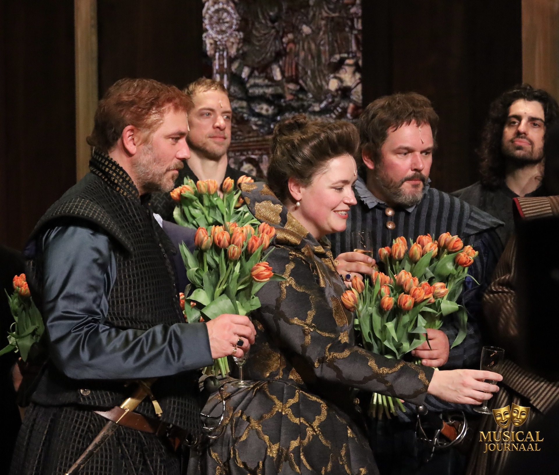 Tot zover de geschiedenis. Niet in de voorstelling, want dat is voor een groot deel een geschiedenisles, met hier en daar een dramaturgische verbuiging van de waarheid. Daardoor krijg je ook minder mee van de echte karakterontwikkeling van de personages. De Spaanse koning Filips II wordt karikaturaal afgeschilderd als een pedant mannetje en ook andere personages worden vrij clichématig uitgebeeld. Dialogen worden veelal op zeer luide toon gesproken en dat maakt het spel soms potsierlijk. Datzelfde geldt voor de aaneenschakeling van executies, waarbij de onthoofdingsscène (kenners van de geschiedenis weten wel om wie het dan gaat) uitermate knullig is en volkomen ongepast tot een lacherige sfeer in de zaal leidt. Zangtechnisch blijven een aantal uitvoeringen ondermaats. De projectie van filmbeelden, waarbij personages uit de projectie lopen om vervolgens daadwerkelijk op het toneel te verschijnen, is goed gevonden, maar niet altijd even goed uitgevoerd. Wellicht een gevolg van de grote wijzigingen die in de laatste dagen nog zijn aangebracht om de lengte van de voorstelling terug te brengen van bijna vier uur (!) naar de huidige drie uur. Naar verwachting zal dit toch nog wat strakker worden, naarmate er meer routine in de uitvoering komt.